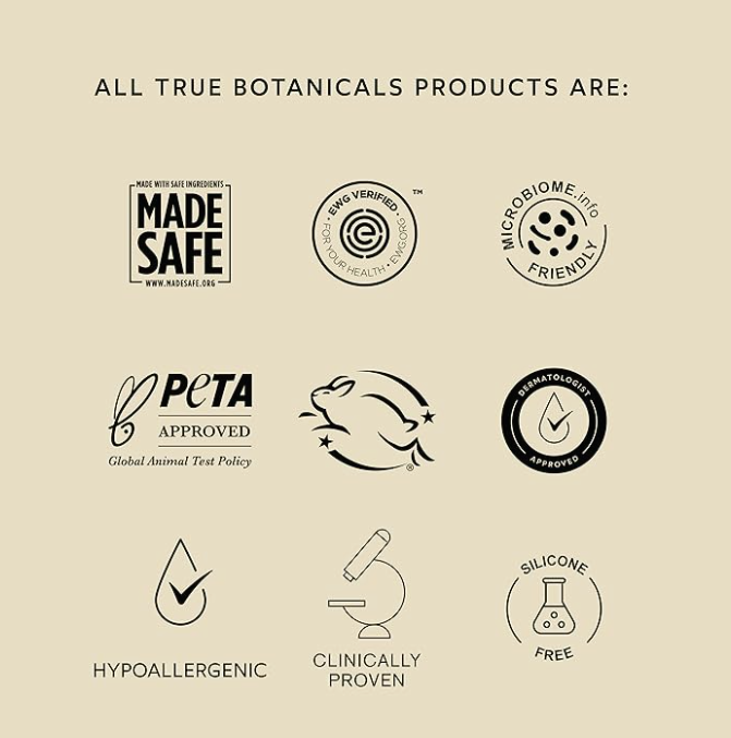 True Botanicals holds distinguished Made Safe certification, verifying their products are formulated without ingredients known to harm human health or ecosystems. They’re also EWG Verified, confirming their commitment to transparent ingredient disclosure and formulations free from potentially harmful chemicals.