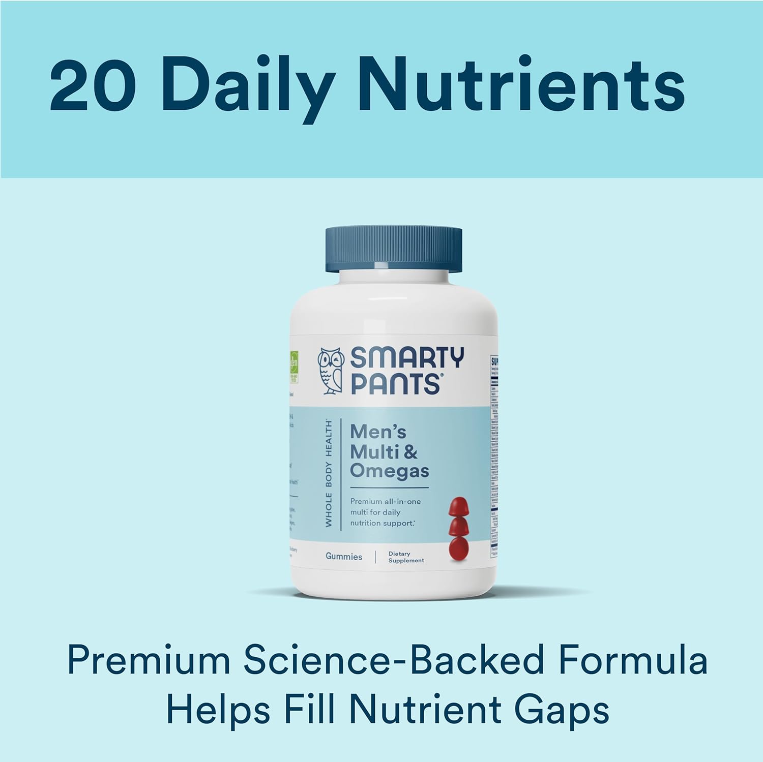 Experience comprehensive men’s health support with SmartyPants‘ delicious gummy multivitamin that makes daily nutrition simple and enjoyable. Crafted with premium, bioavailable nutrients to help fill common nutritional gaps in men’s diets.